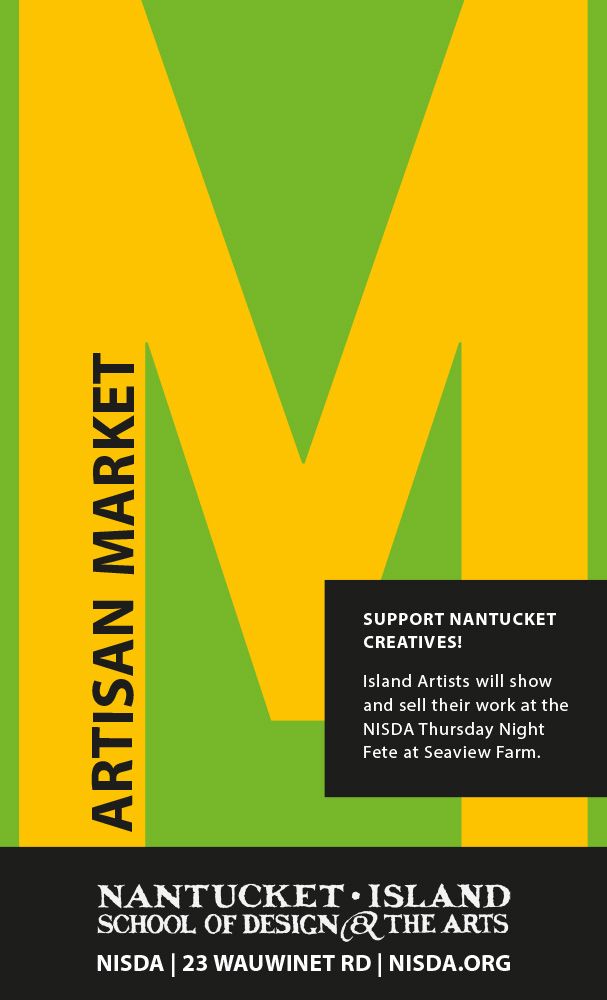 The mission of the Nantucket Artisan Market@NISDA is to provide island artists and craftspeople an opportunity to interact in the community and share their work with others. Artisans pay a fee for a table and keep 100% of their earnings.