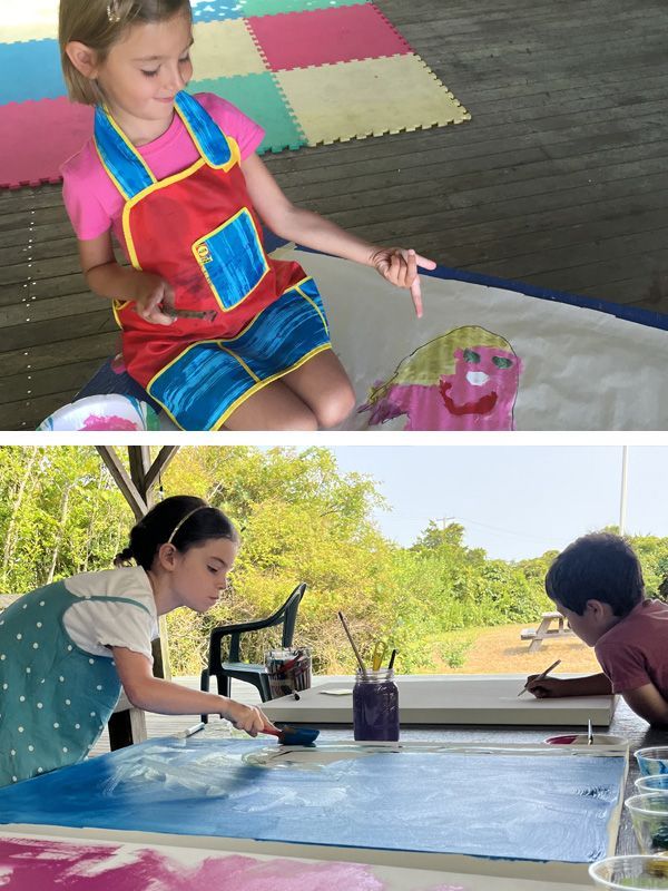 Let’s have fun as we use stamp printing, paint, paper mache, sculpture, clay, collage, kites, masks, puppets + costumes to create and learn!
